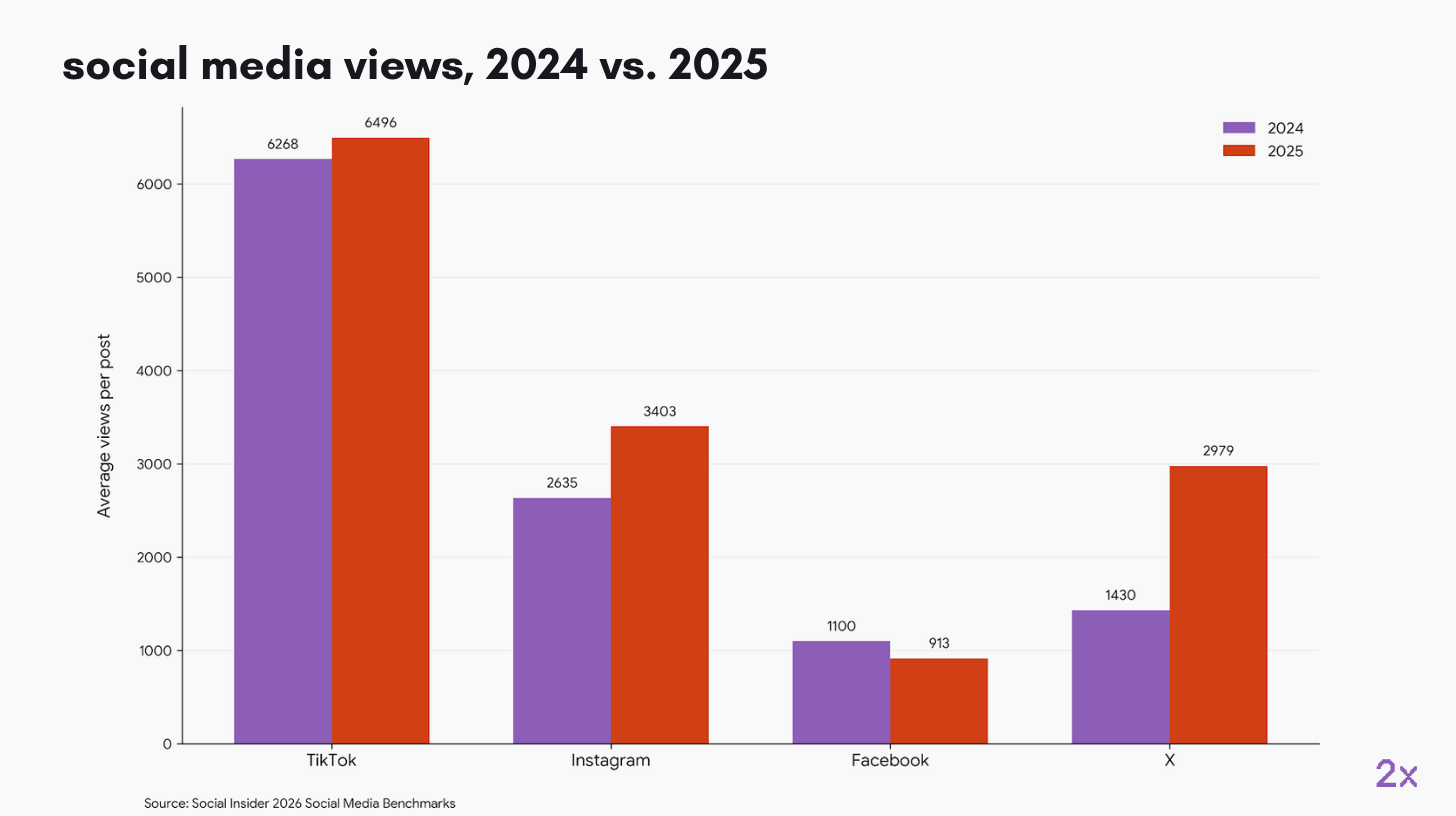 But there’s a twist - while reach dropped 31% on Instagram, views actually GREW roughly 27 to 29%, per SocialInsider’s analysis of 70 million posts.